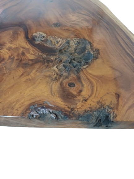 The VetaFiera Table embraces dramatic contrast and wild elegance. With a wider shape on one end, this piece feels sculpted by nature. Stunning dark wood veins and subtle surface hollows make it as expressive as it is functional. A raw yet refined celebration of sustainable design.